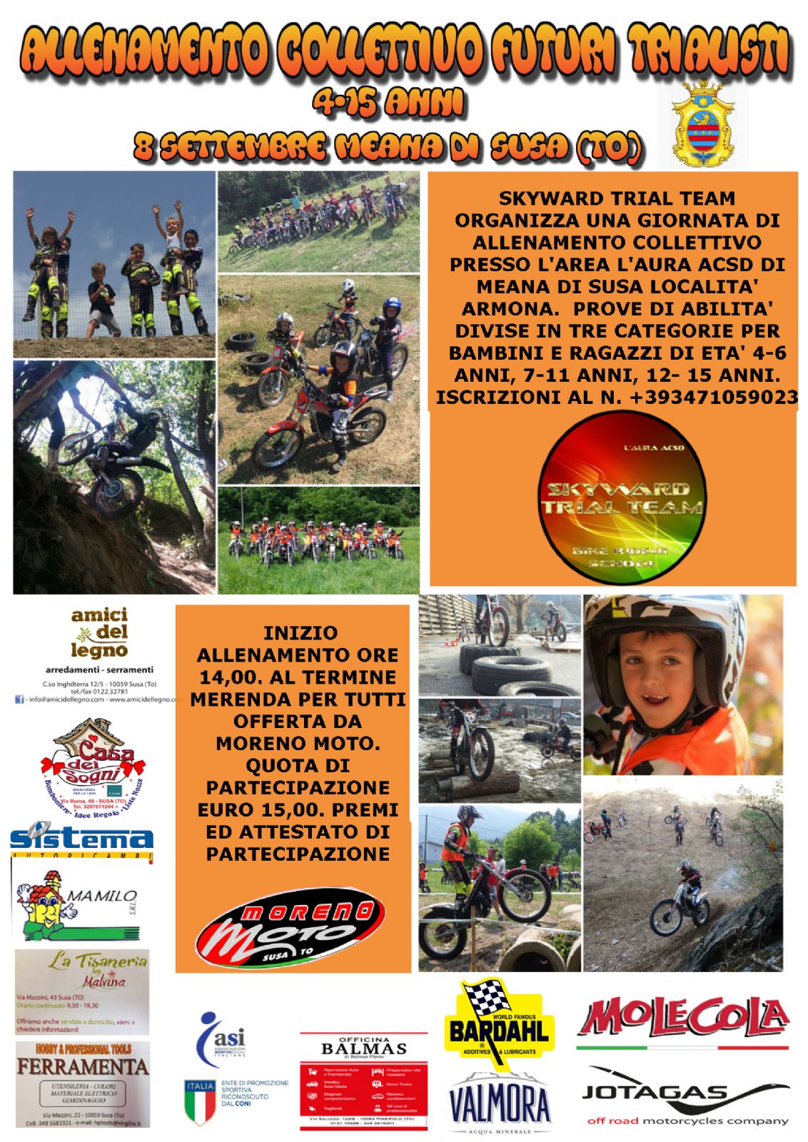 ALLENAMENTO COLLETTIVO FUTURI TRIALISTI SABATO 08.09.2018 DALLE ORE 14:00 IN LOCALITA' ARMONA DEL COMUNE DI MEANA DI SUSA.