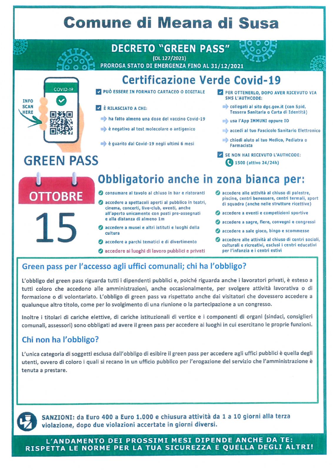 AVVISO DECRETO GREEN PASS (D.L. 127/2021).