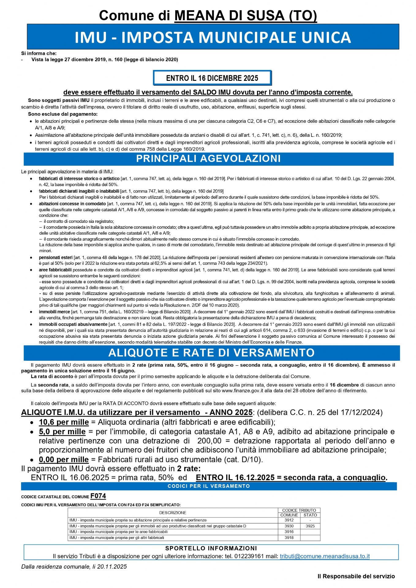 Avviso per pagamento SALDO IMU 2025 e Calcolatore IMU on line