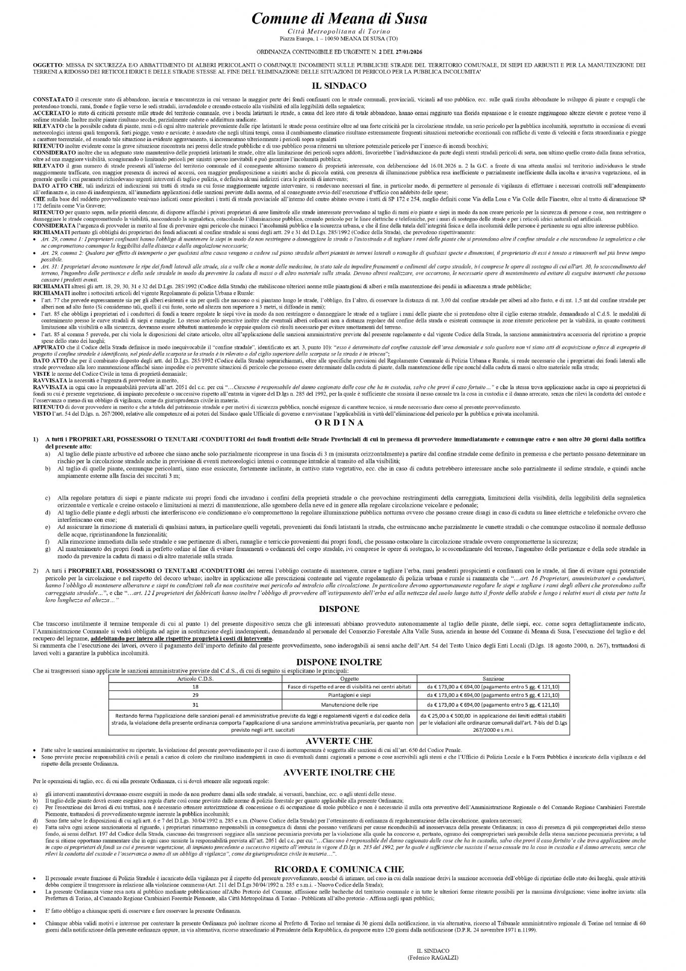 Messa In Sicurezza E/o Abbattimento Di Alberi Pericolanti O Comunque Incombenti Sulle Pubbliche Strade Del Territorio Comunale, Di Siepi Ed Arbusti E Per La Manutenzione Dei Terreni A Ridosso Dei Reticoli Idrici E Delle Strade Stesse Al Fine Dell’eliminazione Delle Situazioni Di Pericolo Per La Pubblica Incolumita'
