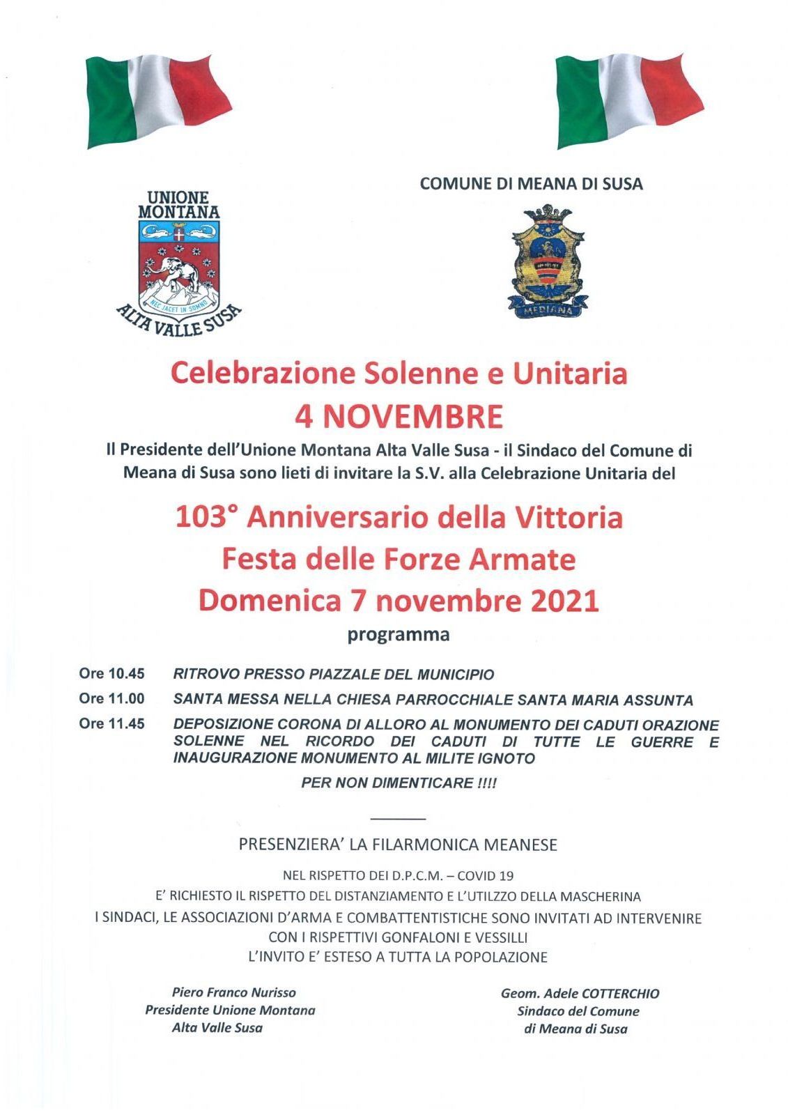 DOMENICA 07.11.2021 CELEBRAZIONE SOLENNE E UNITARIA DEL 103° ANNIVERSARIO DELLA VITTORIA E FESTA DELLE FORZE ARMATE.