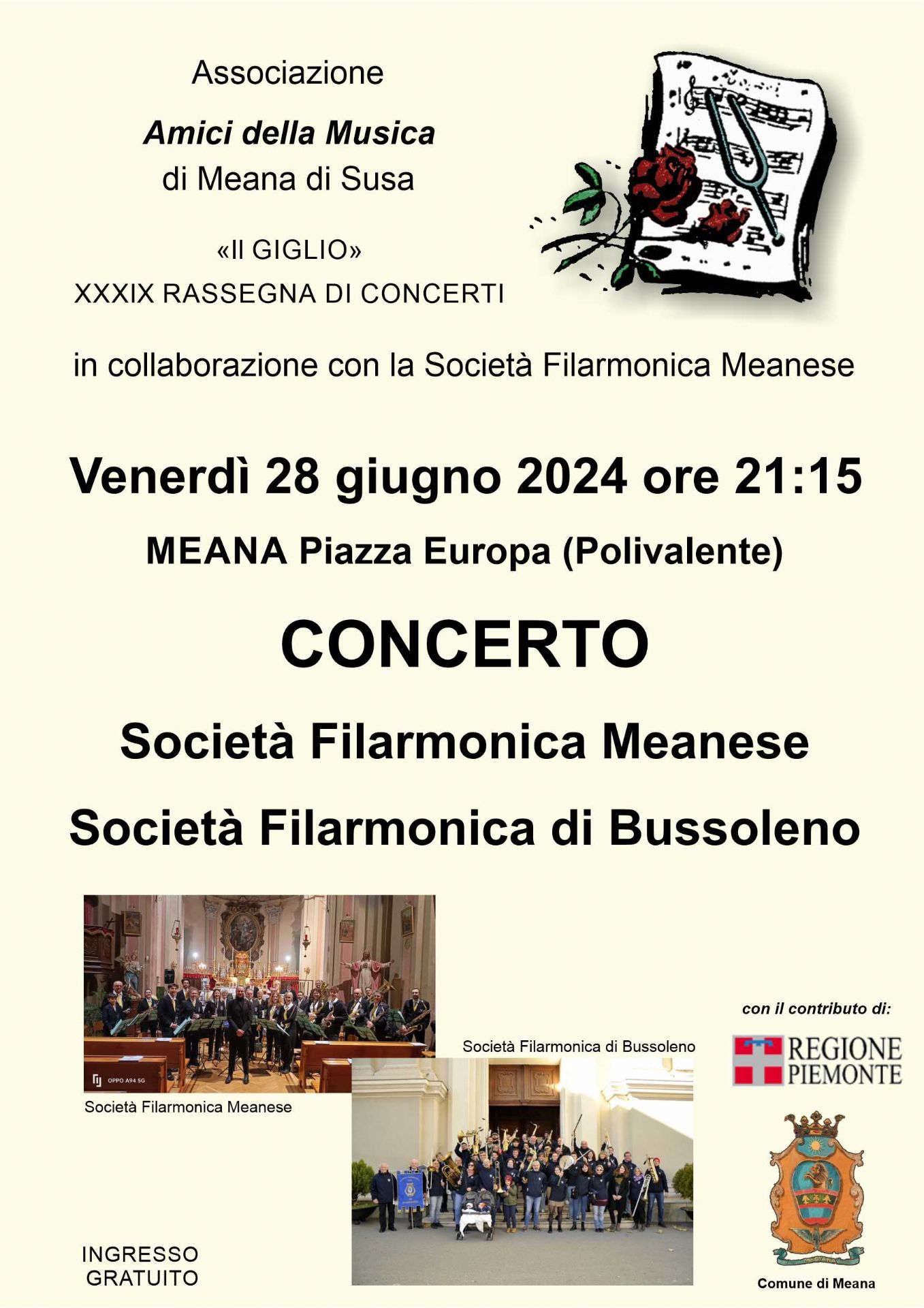 L'Associazione AMICI DELLA MUSICA di Meana di Susa in collaborazione con la SOCIETA' FILARMONICA MEANESE per la XXXIX rassegna di concerti "IL GIGLIO" organizzano: