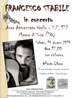 L'associazione Culturale Dal Gallo Sebastiano festeggia l'anniversario della Biblioteca Popolare e di attività a Meana di Susa con un concerto del cantautore torinese Francesco Stabile. Il concerto si terrà sabato 14 giugno 2014 nell'Area Attrezzata del Vaglio, a Meana di Susa, s.p. 172 del Colle delle Finestre. Dalle ore 17 vi aspettiamo per festeggiare insieme. Rinfresco. Ingresso ad offerta libera.