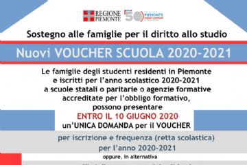 NUOVI VOUCHER SCUOLA 2020-2021 A SOSTEGNO DELLE FAMIGLIE PER IL DIRITTO ALLO STUDIO ANNO SCOLASTICO 2020-2021