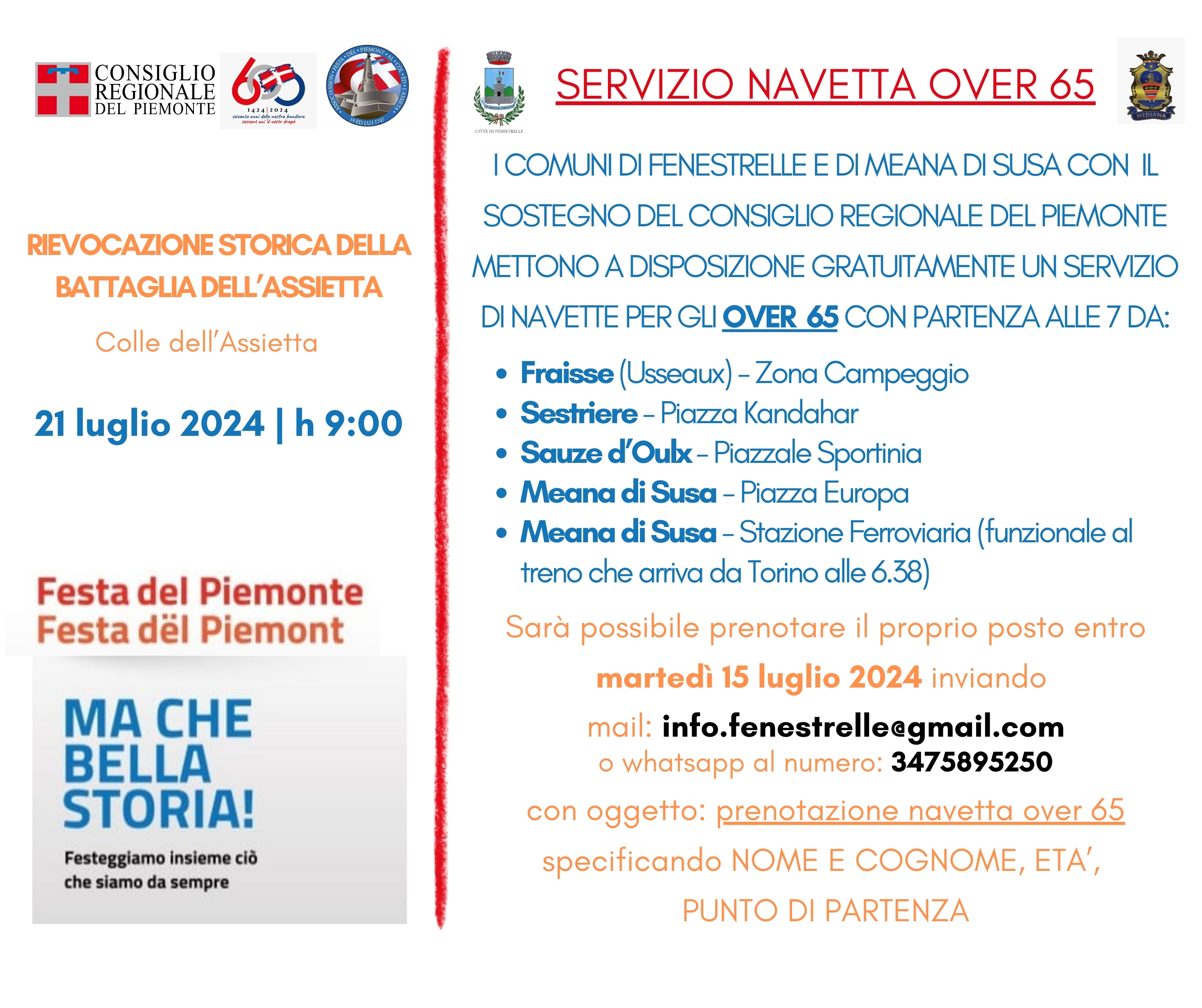 Progetto in collaborazione con il Consiglio Regionale del Piemonte (ente capofila) nell'organizzazione della "Festa del Piemonte" relativa alla rievocazione storica della battaglia del 19 Luglio 1747 al Colle dell'Assietta, evento che si svolge ogni anno nella terza domenica del mese di luglio.
