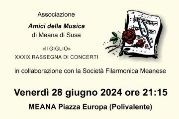 L'Associazione AMICI DELLA MUSICA di Meana di Susa in collaborazione con la SOCIETA' FILARMONICA MEANESE per la XXXIX rassegna di concerti "IL GIGLIO" organizzano: