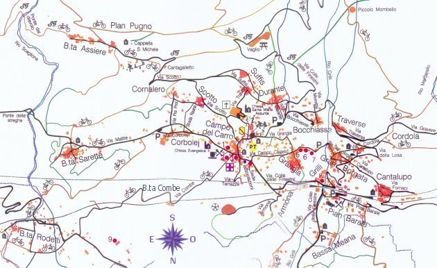 Meana con i suoi magnifici dintorni è occasione di bellissime passeggiate nei suoi boschi e alle sorgenti che numerose sgorgano in varie regioni; ma data la disposizione delle sue molte borgate sparse su ampio spazio, offre al villeggiante motivo di diporto anche il solo spostarsi da una borgata all'altra. I percorsi, che di solito si svolgono per viottoli e strade comode e ombreggiate, permettono di visitare i vari borghi e scoprire le caratteristiche di un modo di vivere, ora scomparso, ma che ha lasciato profonde tracce nel paesaggio, nell'architettura e nel costume.